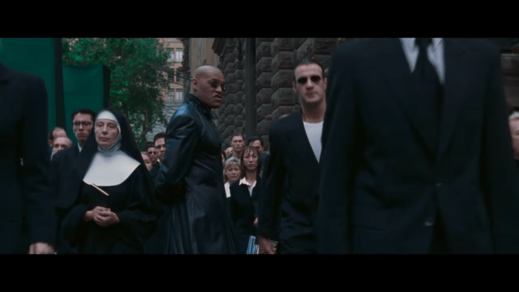 Meşhur “kırmızı elbiseli kadın” sahnesinde Neo, Morpheus’u takip ederken şu cümleleri söyler. “Matrix bir sistemdir Neo. Sistem bizim düşmanımızdır.”, “Kurtarmaya çalıştığımız insanların zihinleri.”, “Ama onların çoğu fişten çekilmeye (unplugged) hazır değiller hatta öylesine alışmışlar ki sistemi korumak için savaşacaklar”